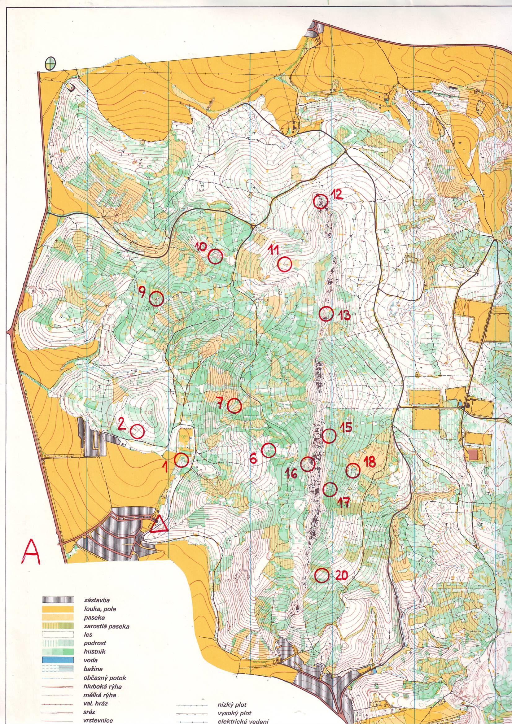 Návrat ke kořenům 2020 - mapy s tratěmi (Babí lom, 1:15000, ekvidistance 5 m, stav 1990, autor Zdeněk Lenhart)